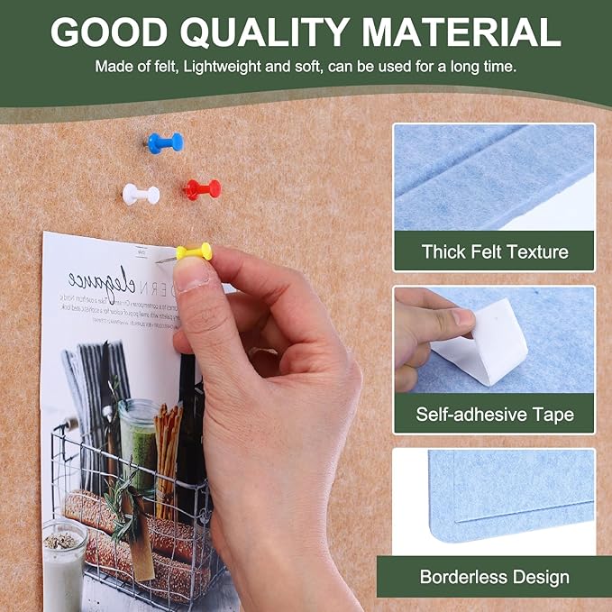 - Multi-purpose - Felt Picture Board is of suitable size, simple and beautiful, and can be used in scenes such as offices, rooms, cafes, etc. The felt material is softer, and pushpins can be used to hang sticky notes, photos, schedules, calendars, planners, notes, etc., and can also be used to hang keys and necklaces.