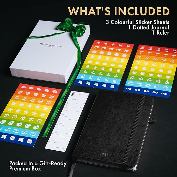 Wordsworth & Black A5 Bullet Dotted Journal 216 Dotted Pages, Hardcover Grid Dot Leather, 120 GSM Paper, Journaling Notebook for Work & Sketching, Journals for Women, Men - Gifts Box Included Black