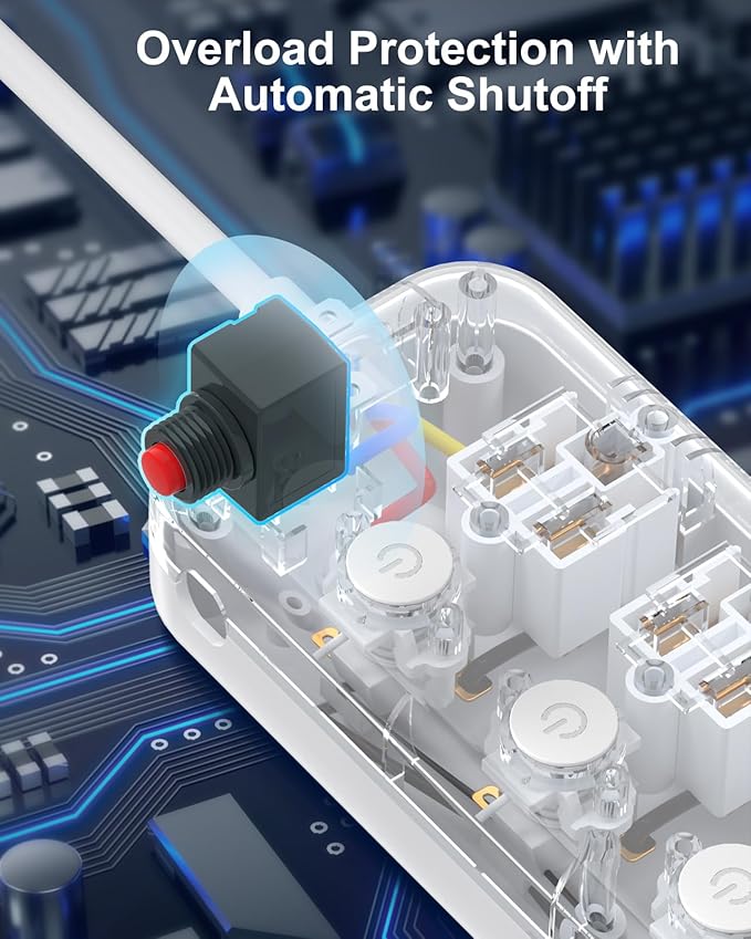 - 【Overload Protected and Surge Protected】The 1080J surge protector will automatically cut power to protect your devices when a voltage surge is detected. The reset/off switch with integrated circuit breaker for overload protection of all outlets. Ideal as an air conditioner extension cord, refrigerator extension cord, microwave extension cord, and high voltage extension cord for power tools or large appliances including washer, dryer, aquarium, treadmill and dishwasher.