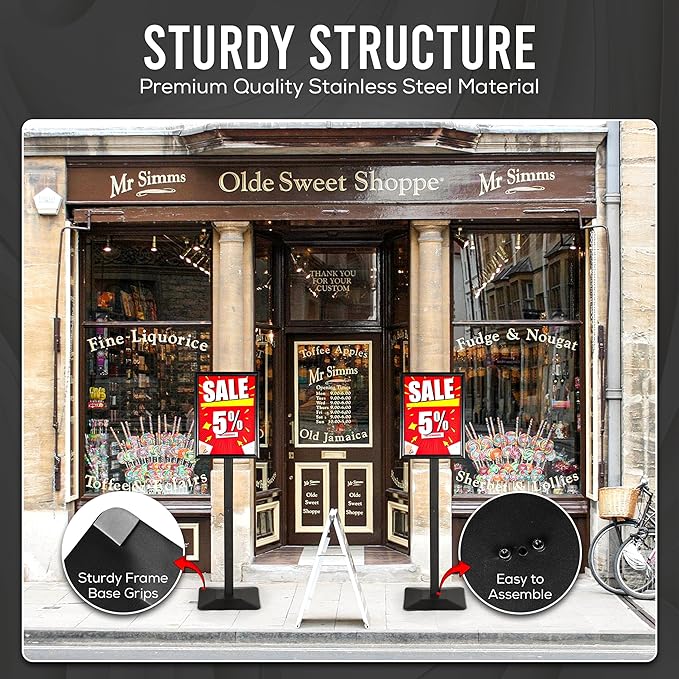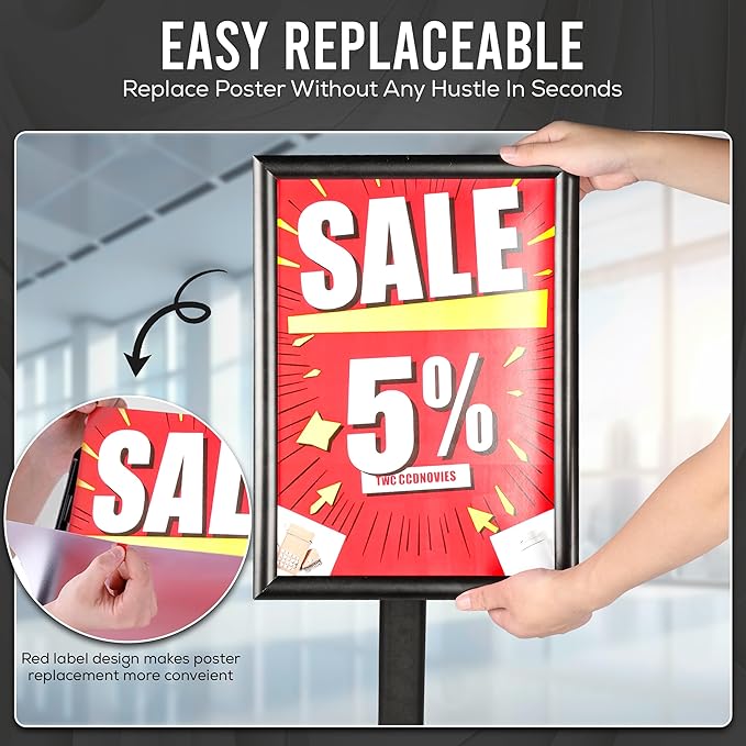 - EASY POSTER CHANGE - ZYVERRAS sign holder stand with front loading snap-frame offers seamless quick and easy poster change option without using any tool, making it a practical solution for frequent graphic updates. If you have any problem with the product, feel free to contact us.