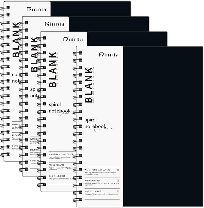 Blank Spiral Notebook 8.5" x 11"-4 Pack unlined spiral notebook Blank Journal A4 Unlined Journals for drawing