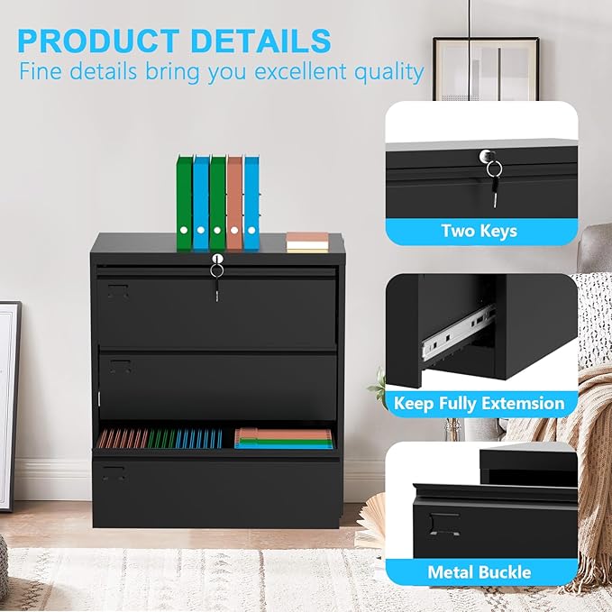 - Stylish Design: The modern black finish of the cabinet complements any home office decor, making it not only functional but also a stylish addition to your workspace.