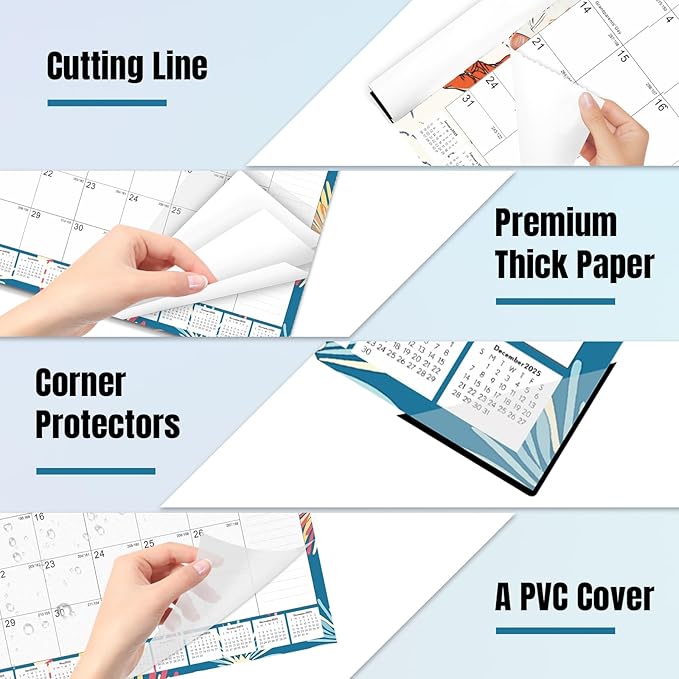 - ✨【Transparent Plastic Cover】Our desk calendar 2025 with clear plastic cover protects the calendar from accidentally tipped coffee or water wetting the papers,Two corner protectors are included to keep the pages flat( tips : Writeable after lifting the cover)