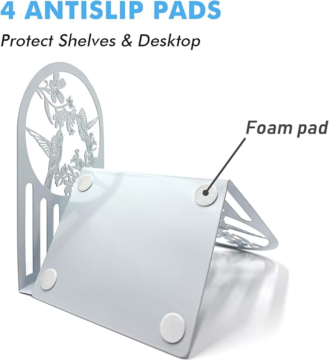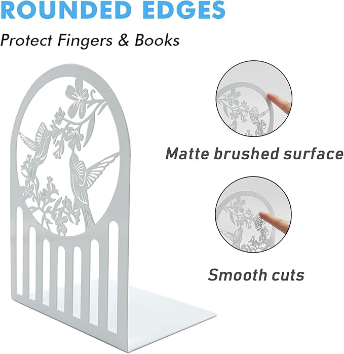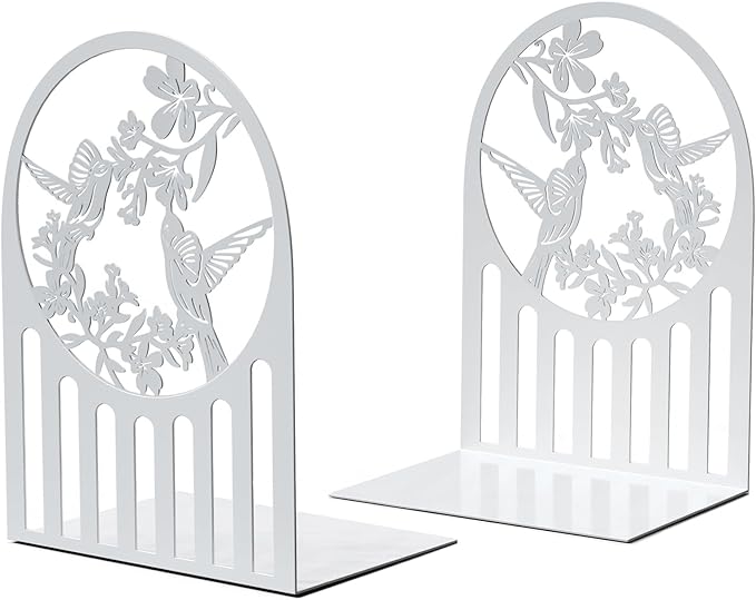 Hummingbird Book Ends, Metal Bookends for Shelves Decorative, Book Stopper for Heavy Books, Bookends for Home, Office, Library, School Use (White)