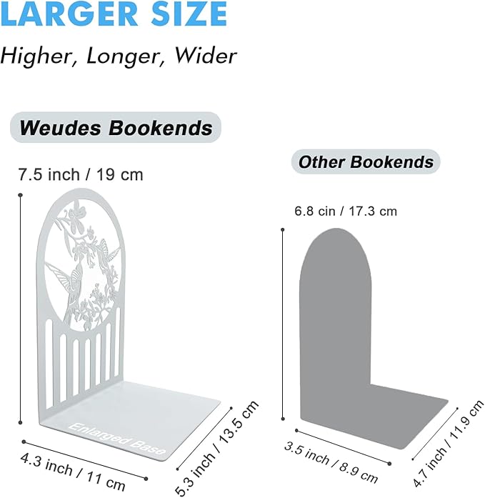 - 【Unique Design】:One of a kind hummingbird design book ends, the delicate design captures the grace and beauty of hummingbirds in flight, making the bookends a standout decoration for bookshelves and desks in office, home, library and school.