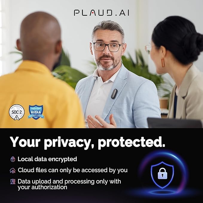 - PRIVACY COMES FIRST: PLAUD NotePin prioritizes your privacy with encrypted local data and cloud storage that’s exclusively yours. Data is processed only with your authorization. Enjoy unlimited free cloud storage with top-tier encryption and security to protect your information.