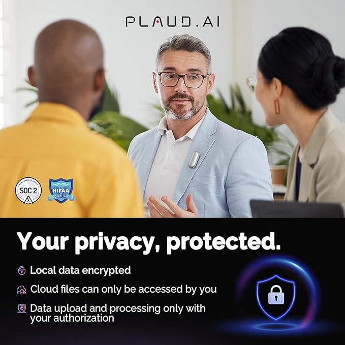 - PRIVACY COMES FIRST: PLAUD NotePin prioritizes your privacy with encrypted local data and cloud storage that’s exclusively yours. Data is processed only with your authorization. Enjoy unlimited free cloud storage with top-tier encryption and security to protect your information.