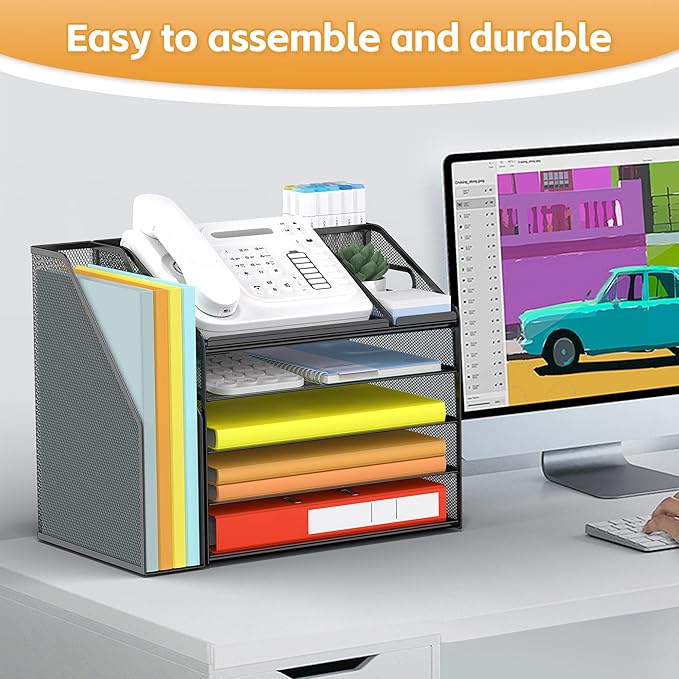 - Durable Steel Mesh Construction: Made from high-quality steel mesh material, this file organizer for desk is designed for long-lasting use. The steel mesh not only offers a sleek, modern appearance but also provides strength and durability for your office needs. It's a stylish addition to your office that combines functionality and aesthetics