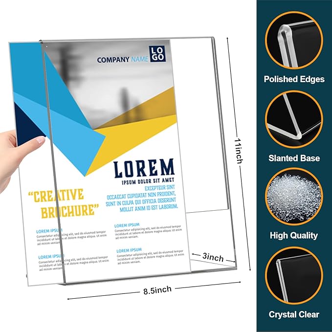 - 【Wide Application】This package contains 14 pcs 8.5 x 11 inch picture paper stand. Our L-shape vertical menu holder stand just insert the paper from the side to display your sign. They can display advertisements, menus, flyers brochures, etc., and can be used in homes, restaurants, offices, wedding scenes, trade exhibitions, and so on.