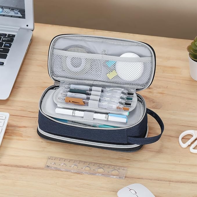 Pencil Case Large Zipper Pencil Pouch for Girls Kids Teens Adults Aesthetic Pencil Bag Stationery Organizer Pencil Case with Handle for School Blue