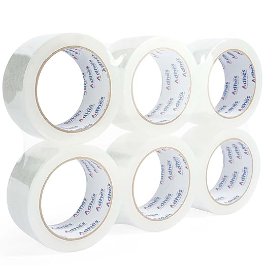 ADHES 2.6mil No Noise Packing Tape, 48mm x 50m, 6 Rolls, Heavy Duty Silent Packing Tape for Moving, Storage, and Packaging