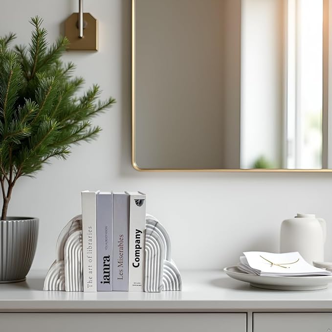 - Elegant Marble Color Cloud Design & Perfect Size:Adorn your space with these exquisite decorative book ends, featuring a soft cloud arch design in a warm, modern beige finish. The 7-inch size is perfectly proportioned to make a stylish statement without overwhelming your shelves. This versatile beige hue and elegant form add a touch of serene sophistication, seamlessly complementing Scandinavian, minimalist, bohemian, and farmhouse home decors.