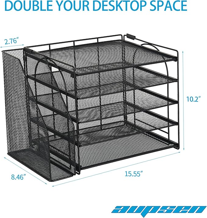 - 【Boost Work Efficiency】AUPSEN desk organizer shelf with 5 sliding paper trays and a movable file rack is the ultimate office organizer. Master desk organization effortlessly. Quickly locate files and double your productivity. Save time and fuel creativity