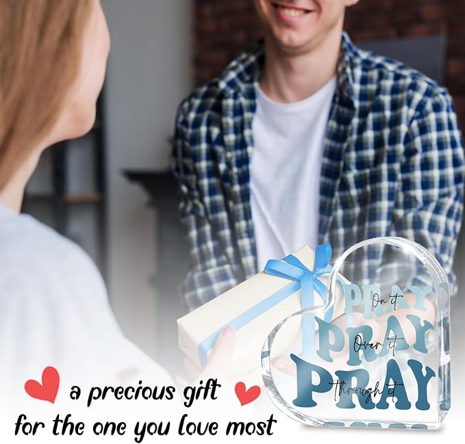 Blue Religious Christian Decor for Woman, Blue Heart Shape Gifts for Birthday Dorm Living Room Church Table Desk Bookshelf, Acrylic Office Desk Accessories Decoration Art Sign-Pray Through It