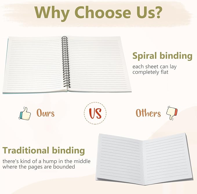 - Smooth to Write: each spiral journal notebook has 60 sheets (120 pages), and each page adopts quality 80gsm white paper, smooth and easy to write, preventing ink infiltrating into the next page, and mild colors can avoid eye fatigue and bring comfortable experience