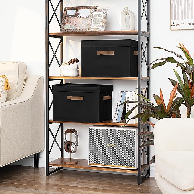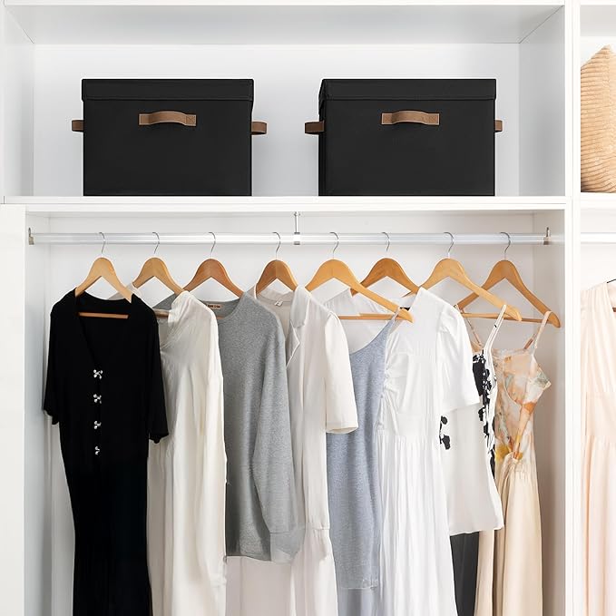 StorageWorks Fabric Storage Bins with Lid, Decorative Storage Boxes for Shelves, Stackable Closet Organizer Basket with Handles, Jumbo, Black, 2-Pack