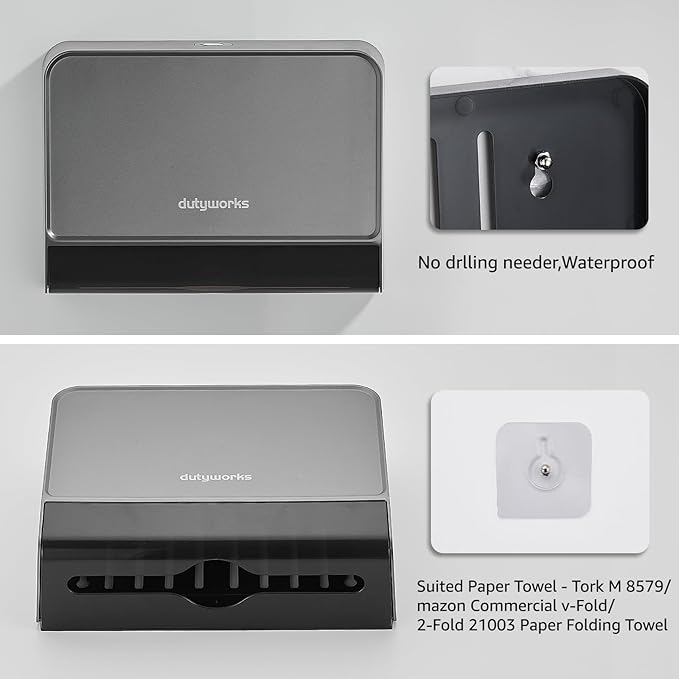 - User-Friendly Design: This bathroom paper towel dispenser offers hassle-free installation with drill or sticker mounting, adapting to any space. A clear window lets you monitor towel levels instantly and refill with ease