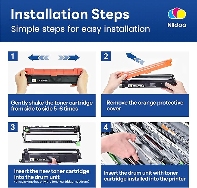 - Package Contents: Nildoa 4 Pack TN229 Toner Cartridge Replacement for Brother TN229 TN229BK TN229C TN229M TN229Y Toner Cartridge High Yield