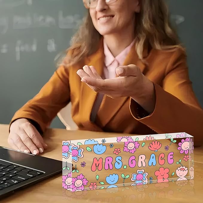 Ship Next Day Personalized Name Plate for Desk, Custom Acrylic Desk Name Sign, Office Appreciation Gifts for Women Men Coworkers Boss Teacher Employee (Teacher)