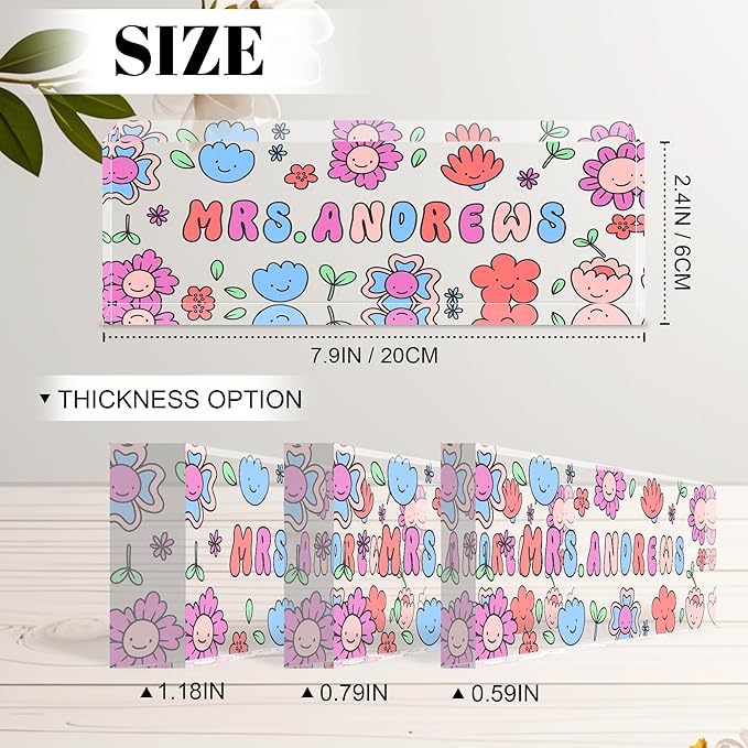 - Professional Customized Nameplate : We offer an extensive selection of designs. No matter what profession you're in, there's a matching style available. The acrylic nameplate measures 7.9 inches in length and 2.4 inches in height. It also comes in three different thicknesses: 0.59 inches, 0.79 inches, and 1.18 inches. This variety allows us to meet the needs of a large number of buyers.