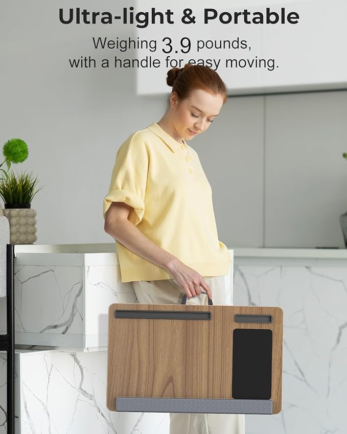 - Stay Organized: The laptop desk for adults features tablet & phone slots for multiple devices and a fixed mouse pad. Laptop stand for bed make it convenient and organized for both work and leisure.