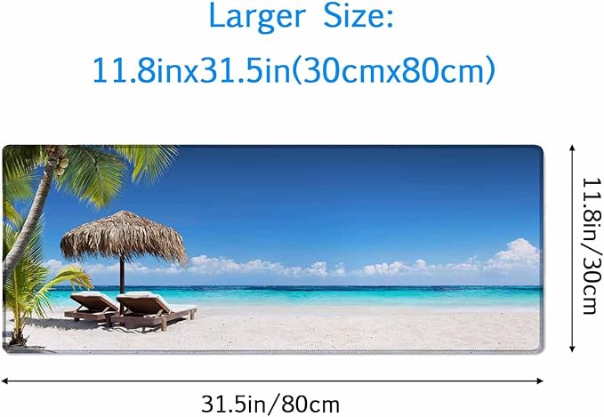 - Large Mouse Pad Size: The Tropical Palm Sea and Beach Mouse Pad Is Large Enough,31.5''X 11.8'' (800mm X 300mm X 3mm), Will Fit Your Desktop Perfectly And Provide Perfect Movement Space, Offers Plenty Of Room For Gaming Or Office Works All While Protecting Your Desk, Applies To All Types Of Mouse Keyboards And More.