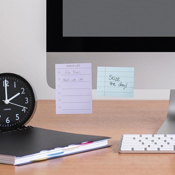 - ADHESIVE NOTES REMOVE CLEANLY: Strong adhesive sticks securely to a variety of surfaces, including desks, planners, and walls, without leaving residue behind