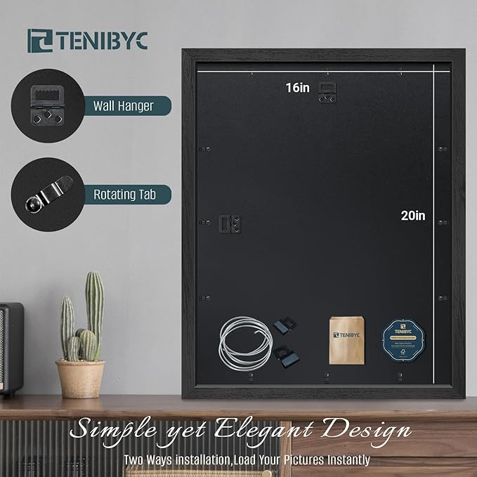 - Gallery - Grade Exclusive Wood Frame: Bask in the allure of TENIBYC's black 16x20 frame, where the subtleties of the wood grain come to life in fine detail. Let your art speak volumes, framed in unparalleled sophistication