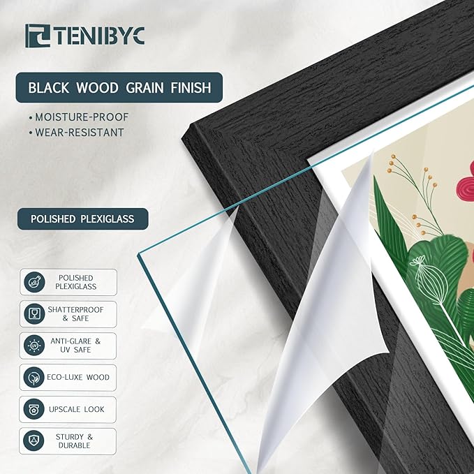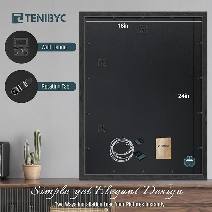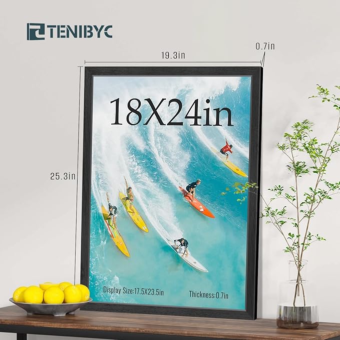 - Gallery - Grade Exclusive Wood Frame: Bask in the allure of TENIBYC's black 18x24 poster frame, where the subtleties of the wood grain come to life in fine detail. Let your art speak volumes, framed in unparalleled sophistication