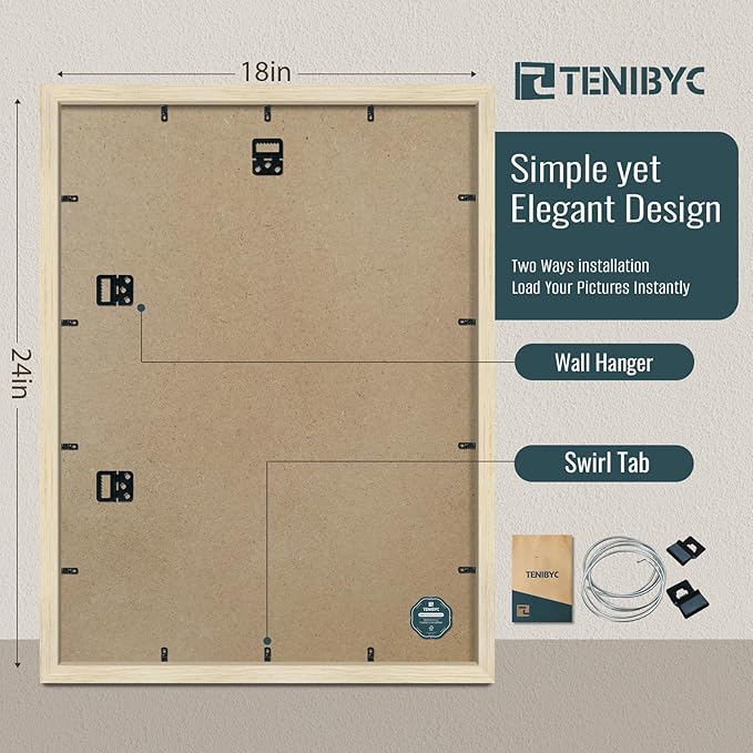 - Gallery - Grade Oak Wood Frame: Bask in the natural allure of TENIBYC's oak 18x24 frame, where the subtleties of the wood grain come to life in fine detail. Modeled after the captivating beauty of a natural forest, transform any piece into a professional showcase, effortlessly