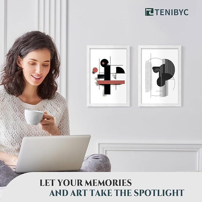 - White Wood Frame, Woodgrain Series: Timeless elegance is achieved as deep white harmonizes with natural wood grain, characterizing the TENIBYC frame. Its versatile design gracefully complements living rooms, corridors, dining rooms, offices, and galleries