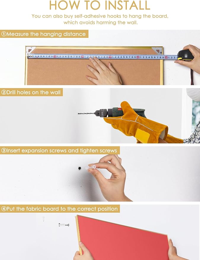 - Classic Cork Message Board: Crafted with a sleek golden aluminum frame, a high-density fabric top layer, and a sturdy 7-layer corrugated paper backing, this inspiration board ensures exceptional durability and longevity.