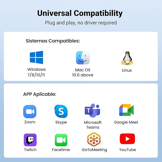 - Wide Compatibility & Multi Application: The webcam for laptop widely works with Windows 7/8/10 and above, Mac OS 10.6, Linux, android and other systems, Perfect for Zoom/Skype/YouTube/Facetime/Twitch/Facebook/Meeting/Gaming/Streaming/Recording, and it supports compatibility with Switch 2 (Please bring your own USB C to USB adapter). Advanced technology, a wide range of applications, and better understanding of your needs