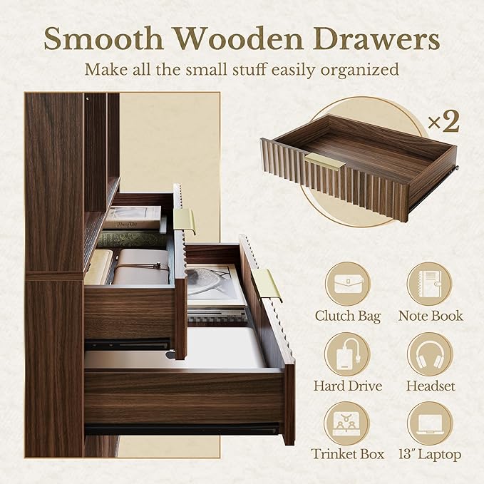 - Versatile Storage Options: Features two handy drawers for personal belongings and a lower storage cabinet with a door for concealing clutter, files, or bulkier items, perfect for keeping your space organized and dust-free.