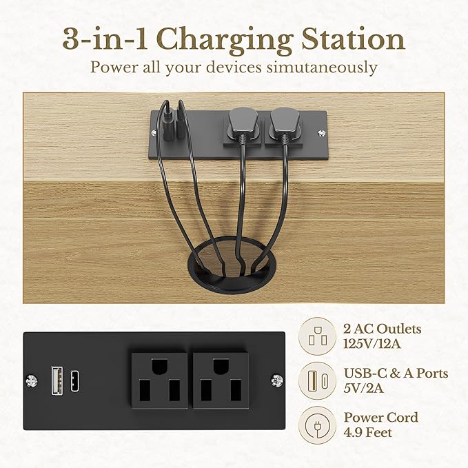 - Make Charging Convenient:Designed with a convenient built-in power outlet on the top surface, including 2 standard outlets, 1 Type C and 1 USB port plus a 6.5-foot power cord can be used to charge your printer, computer, phones and other office equipment duting work or study.