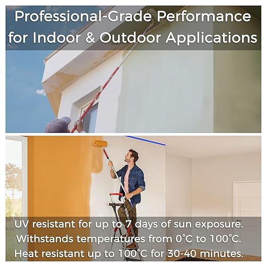 - Improved Formula – Tested for Better Hold: We upgraded our adhesive technology. Lab-tested for stronger adhesion and long-lasting performance, this blue painter’s tape sticks better on various surfaces—yet still removes cleanly without leaving residue