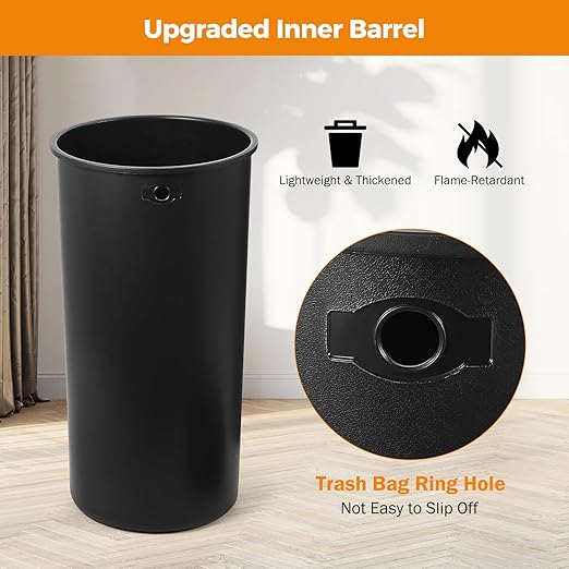 - **Removable Inner Bin & Easy Lift-Off Lid** The BEAMNOVA commercial heavy-duty trash can includes a detachable inner bin for easy cleaning and maintenance. The lid lifts off smoothly, allowing for quick and hassle-free bag changes while keeping the bag discreetly hidden for a tidy look.