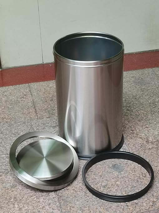 - 【Made of Material】 Stainless steel Cover made , It's Fingerprint-Proof , Rubber Pads on base for Non-slip,Mute flip cover,Titanium wire drawing process,it's sturdy and durable garbage can.