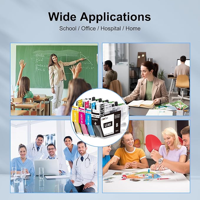 - [Package Content]: 4 Pack LC401XL Ink cartridges. 1x LC401XL Black, 1x LC401XL Cyan, 1x LC401XL Magenta, 1 x LC401XL Yellow.