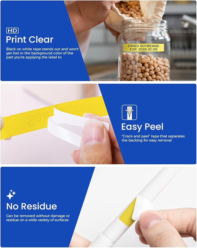- Replace for tze tape 18mm black on yellow are designed for quick removal, leaving no sticky mess behind. It can work well for reusing items without damage