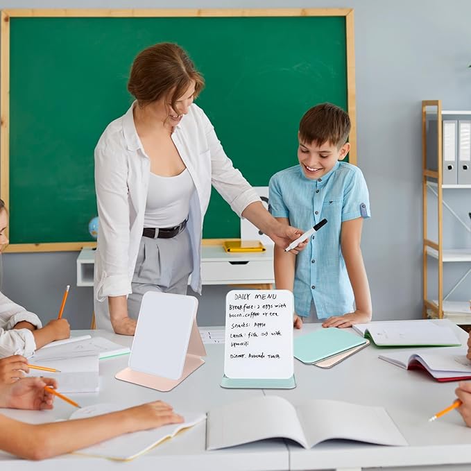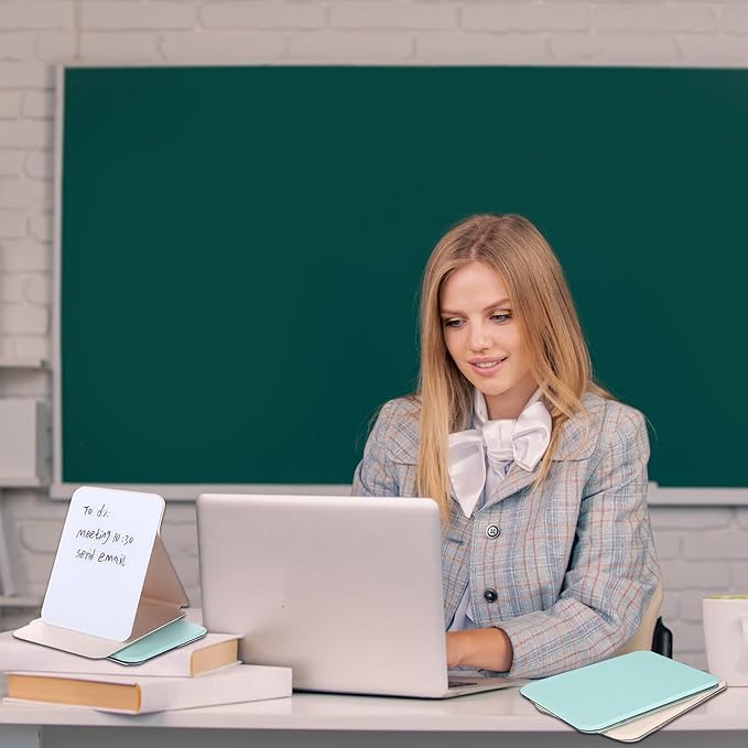 - Comprehensive Set: our desk whiteboard set includes 2 glass wet erase boards (pink and green), and 2 wet erase markers (white and black) with eraser heads, allowing for a complete writing experience