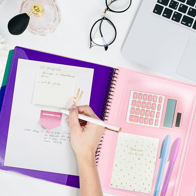 - 【Sturdy Project Organizer】 Fits letter-size paper and keeps everyday paperwork in one place. This spiral-bound project and document organizer features a pink cover with thick 18 mil polypropylene that is tear-resistant and water-resistant, plus acid-free poly for long-term filing. A smooth plastic spiral and rounded corners make it easy to carry day to day.