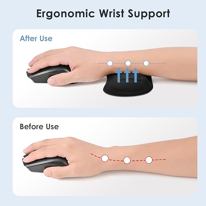 - 【Memory Foam Fillings】The interior of wrist rest for mouse is filled with memory foam, soft, slow rebounding without deformation, for long-term use. Provides comfort and enough support to your wrist.