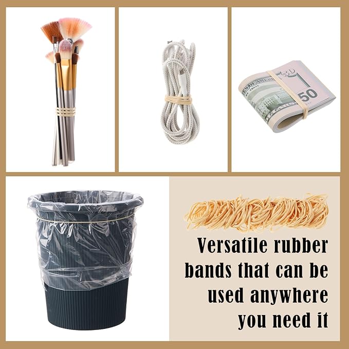 - High elasticity: This rubber bands are made of 1/8 thick rubber material. Its good elastic design can effectively reduce strain caused by excessive force in repeated bundling tasks. Whether it is applied for office document organization, kitchen utensil fixing, or DIY handicraft, this rubber bands can provide stable and reliable performance to meet daily diverse needs