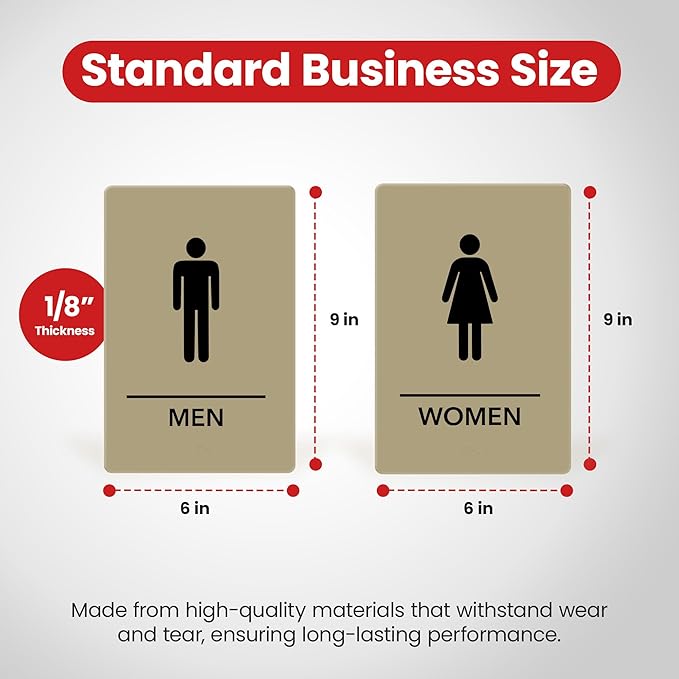 Promot Men and Women Restroom Sign – ADA Braille Bathroom Sign for Business, Self-Adhesive, 9" x 6", Commercial Door Signage, Office Wall Decor - Taupe