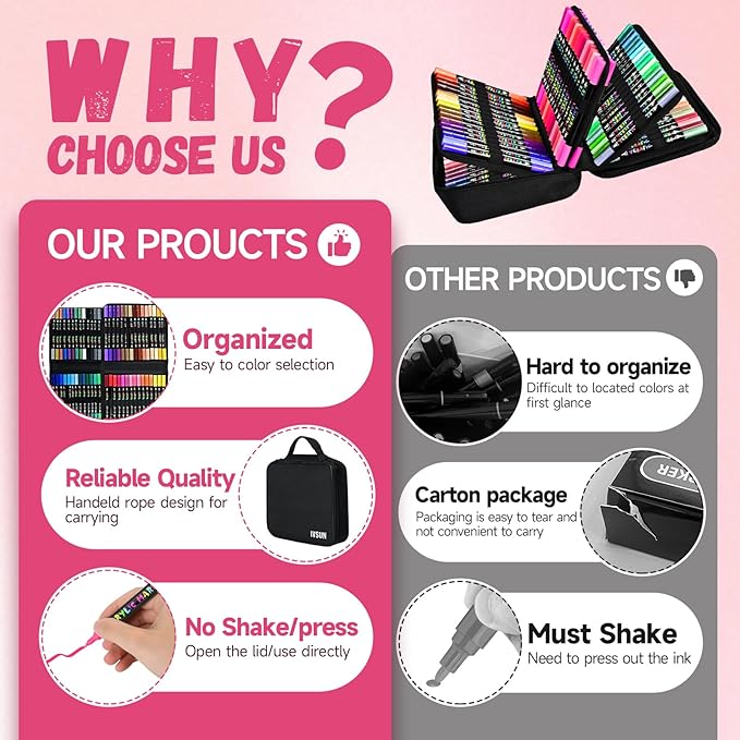 IVSUN Acrylic Paint Pens, 100 Colors Dual Tip Paint Markers with Fine Tip and Brush Tip Pens for Stone, Wood, Canvas, Calligraphy, Ceramic, Metal, Glass, Rock Painting, DIY Crafts Art Supplies Kit