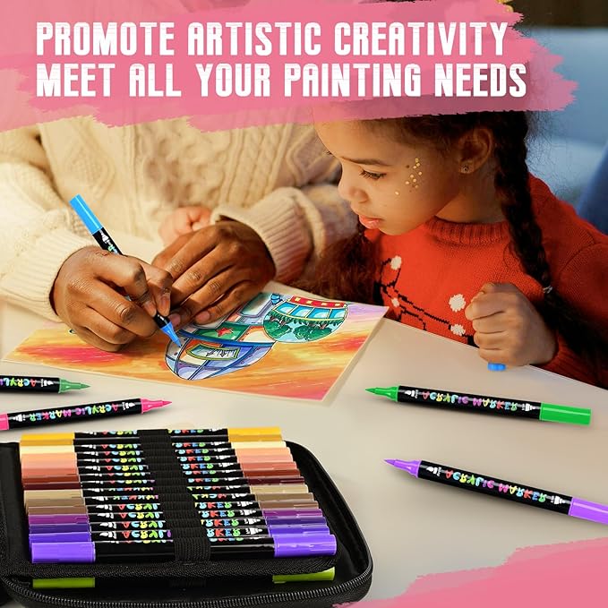- Non-Toxic: Each acrylic marker conforms to ASTM D-4236 standards. The markers are made with water-based ink, non-toxic, which allows for smooth and continuous painting, allowing for easy creation. The resulting images are brightly colored, resistant to fading, waterproof, and sun resistant, making them suitable for long-term preservation. Note: Please tighten the cap and put pens horizontally if you don't use them.