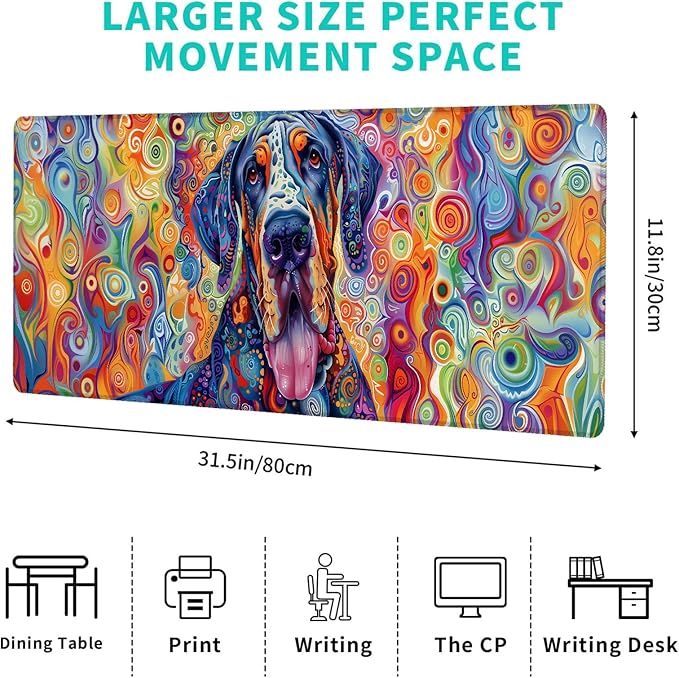 Great Dane Gaming Mouse Pad,12x31.5in Non-Slip Rubber Cute Dog Desk Mat,Large Extended Colorful Puppy Portrait Mousepad for Office Home Laptop,Mice Pads Gifts,Game Lover Deskmat Decor