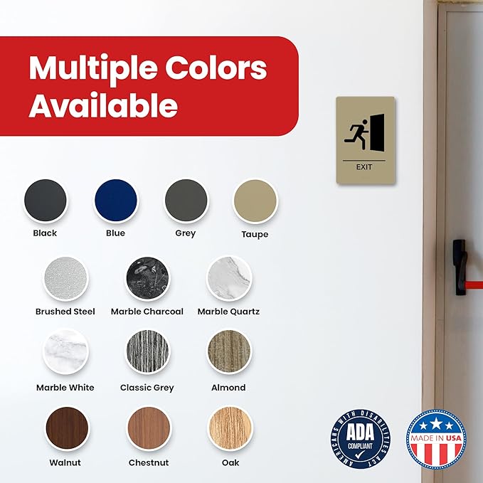 Promot Exit Sign – ADA Braille Exit Sign for Business, Self-Adhesive, 9" x 6", Commercial Door Signage, Office Wall Decor - Taupe