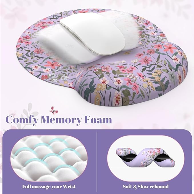 iLeadon XXL Mouse Pad, Mousepad with Wrist Rest, Memory Foam Wrist Support for Keyboard, Ultra Smooth Mouse Pad for Gaming, Purple Desk Mat for Office Home (Floral)